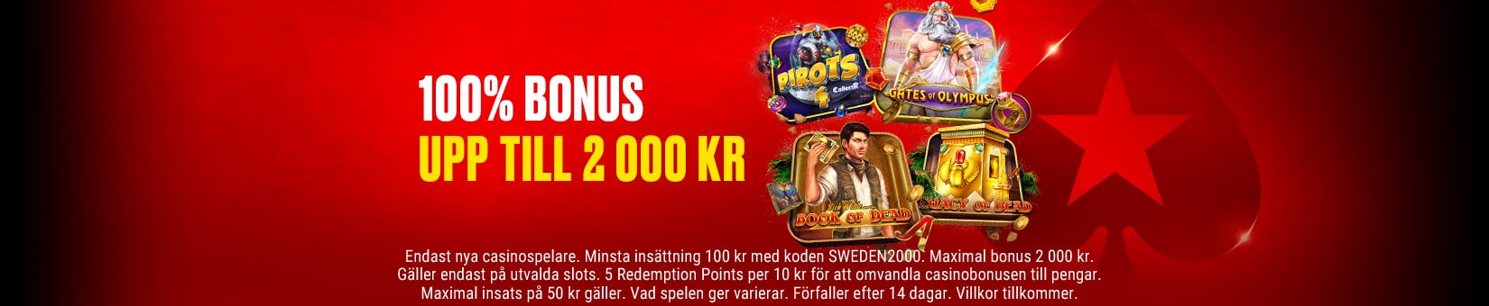 För att nyttja erbjudandet måste spelare sätta in minst 100 kr med bonuskoden SWEDEN2000. Maximal kvalificerande insättning är 2 000 kr.